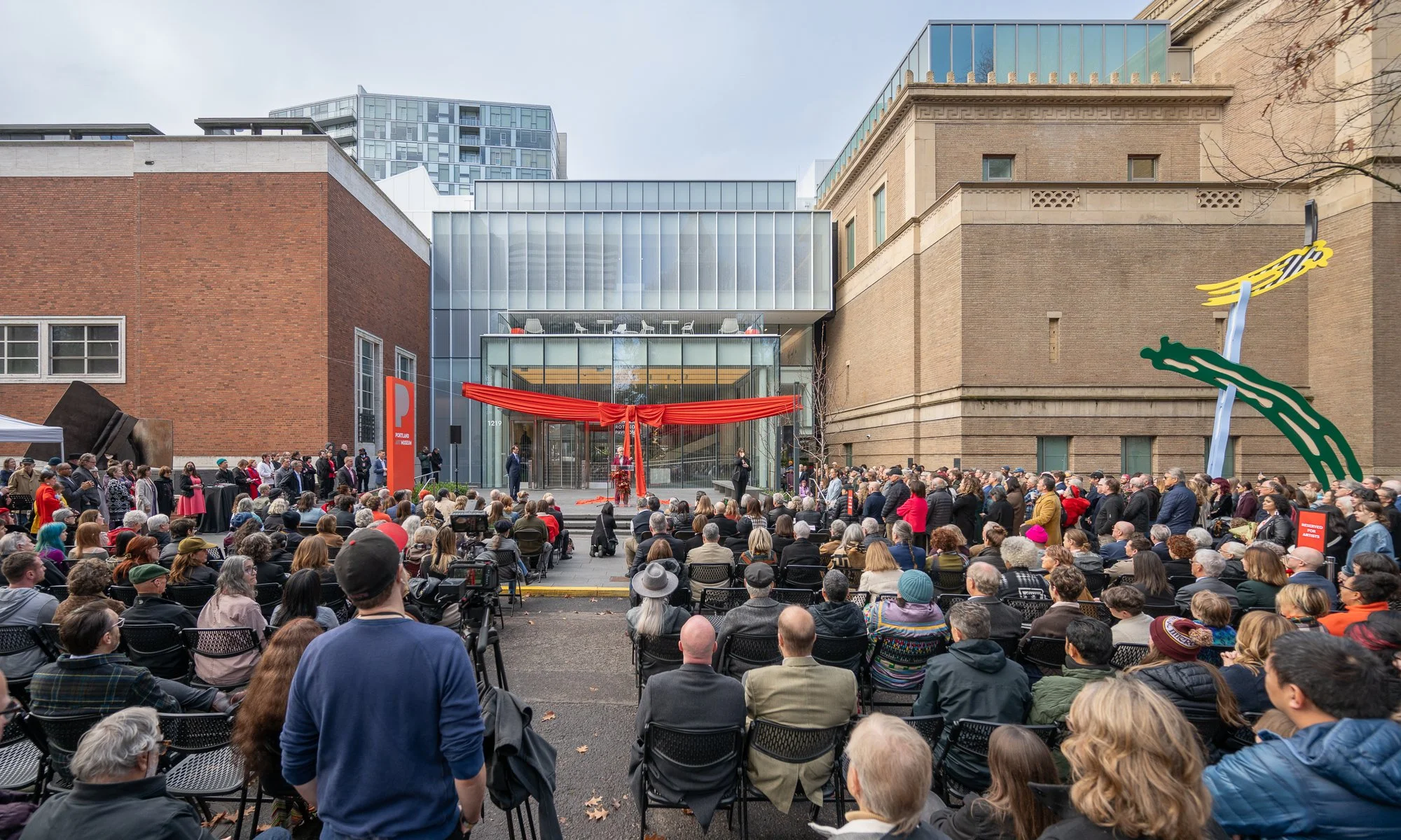When the Portland Art Museum prepared to unveil its newly expanded campus, they came to Portland Garment Factory to help create the event's bold and unforgettable backdrop. PGF brought to life an enormous bow that wrapped the facade of the Museum’s new wing. From materials testing and pattern development to structural engineering, fabrication, and on-site installation, we created a highly visible, light weight, durable, and weather tolerant bow with sculpted loops and exaggerated ribbons.
