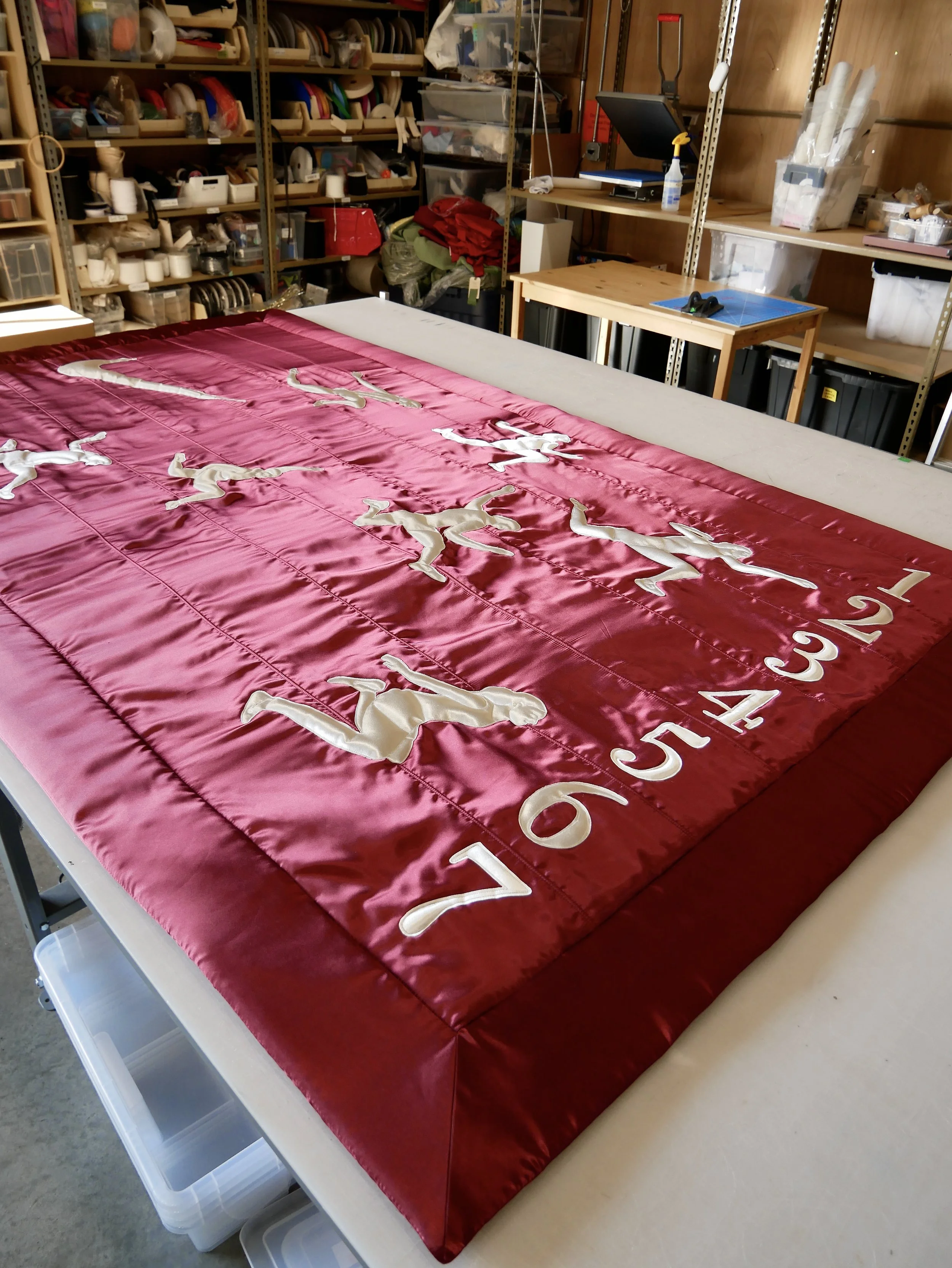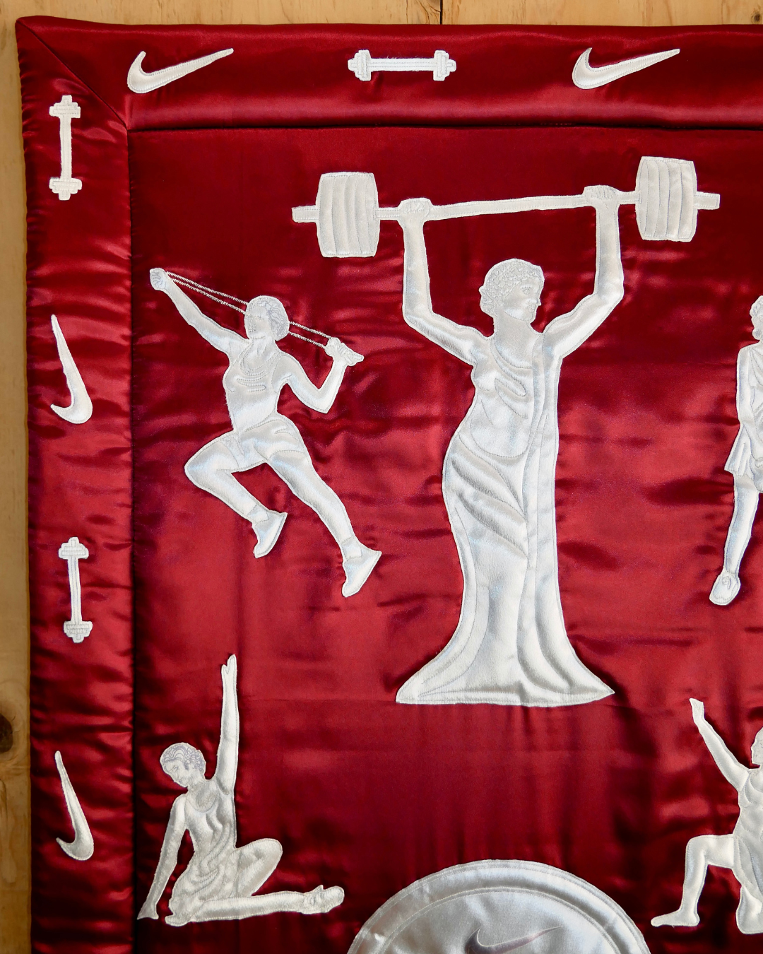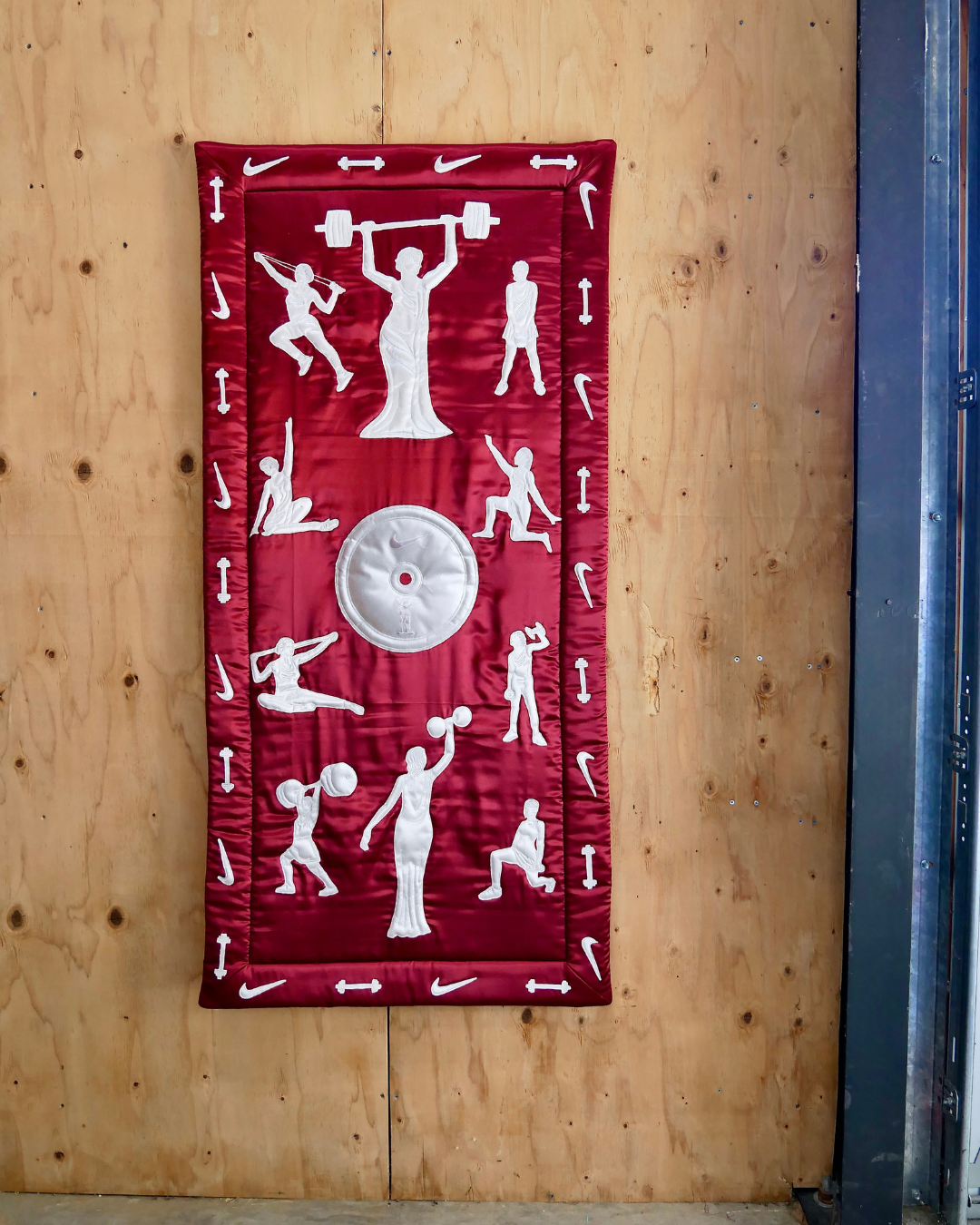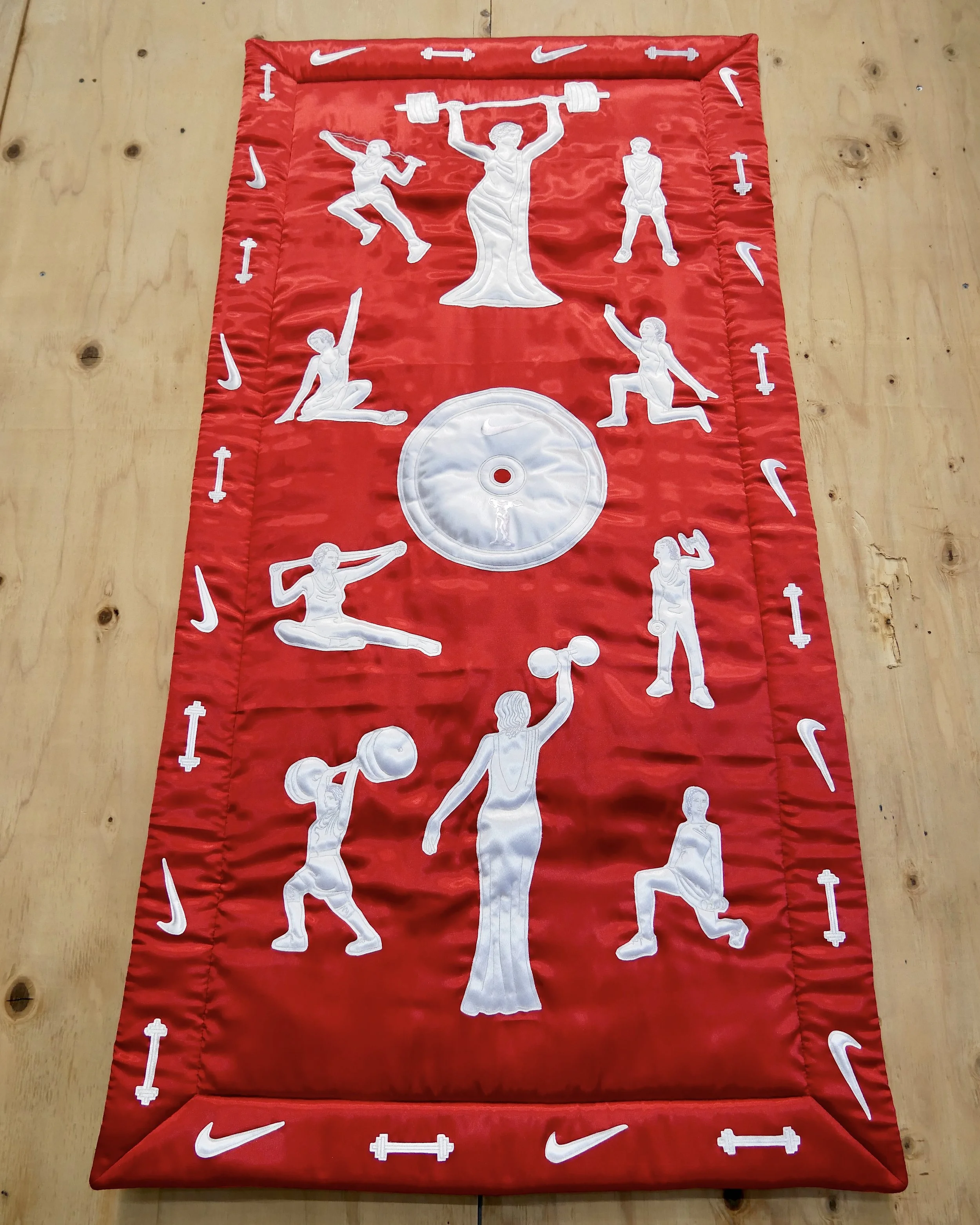 PGF collaborated with Nike to create the Victory Tapestries—a series of large-scale fabric artworks for their luxury retail space inside Selfridges, London. Designed to honor the spirit of performance and craftsmanship, the tapestries reinterpret Nike’s muse, the winged goddess of Victory, through the lens of contemporary textile art. Each piece was meticulously hand-crafted in PGF’s Portland studio, where our team stenciled, hand-stitched, quilted, and puffed every gesture and form, merging athleticism with high-level custom detail. Installed as part of Nike’s long-term retail presence, the silky, sculptural wall hangings frame exclusive performance assortments and product collaborations—embodying Nike’s ongoing dialogue between innovation, artistry, and the pursuit of victory, brought to life through PGF’s devotion to craft.