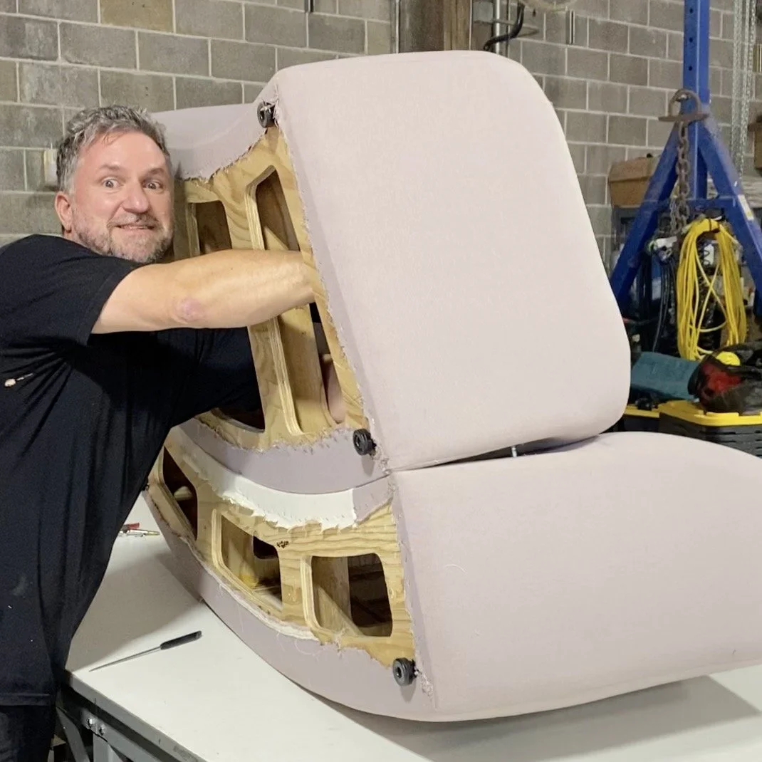 The Conversation Pit is a monumental nine-piece modular sofa designed by Studio Howard, built at Oregon Natural Fiber Mill (OnFM), with fabrication support by yours truly, Portland Garment Factory (PGF).
