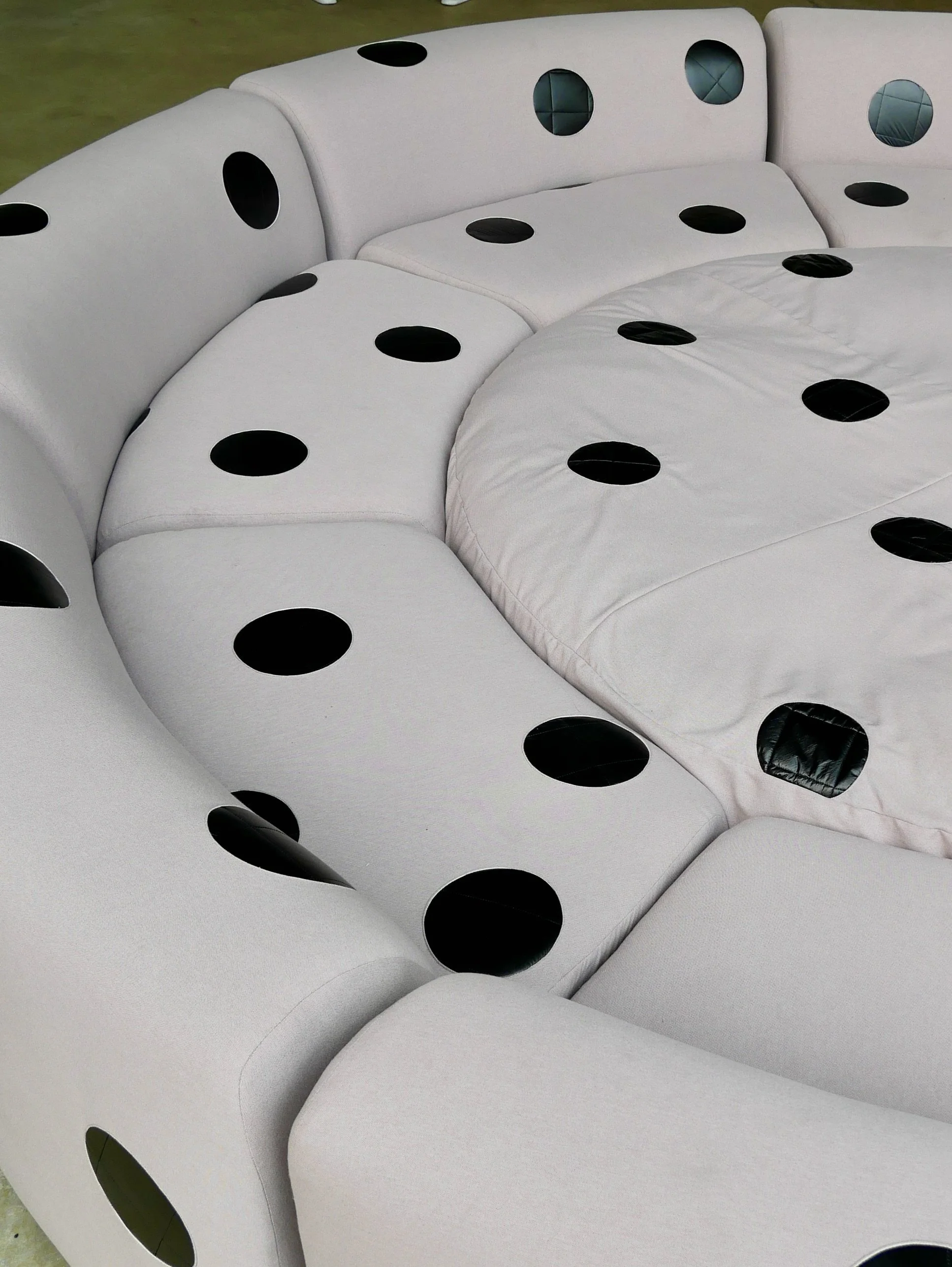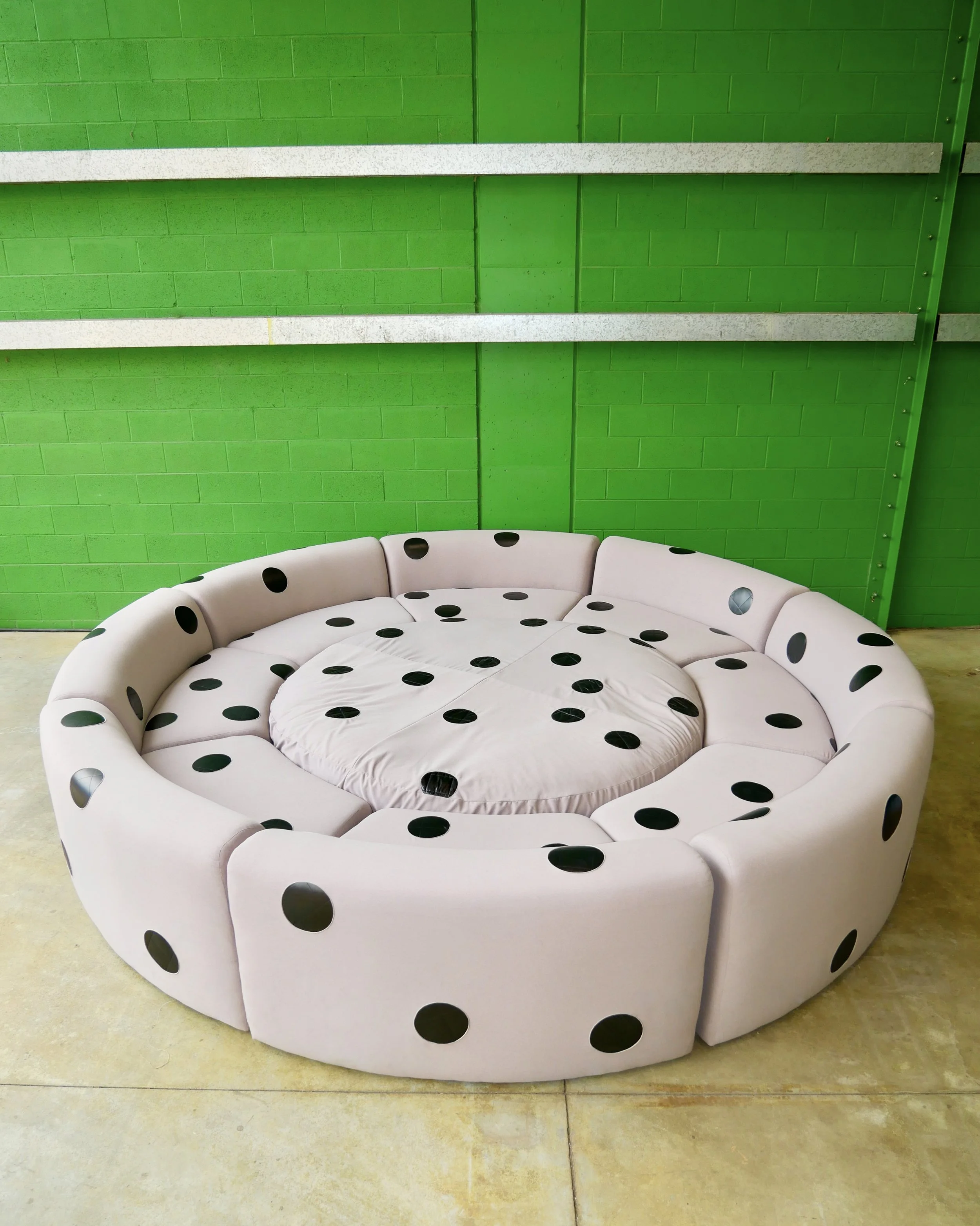 Together, PGF, OnFM, and Studio Howard form a trifecta of creativity and production, with their first collaborative creation, The Conversation Pit—a striking, artistically designed modular sofa built to seat up to 30 people and inspire connection at gatherings and events.